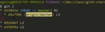 위 로그에서 origin/master가 원격브랜치를 가리키고 HEAD -> master가 현재 로컬브랜치를 의미한다.