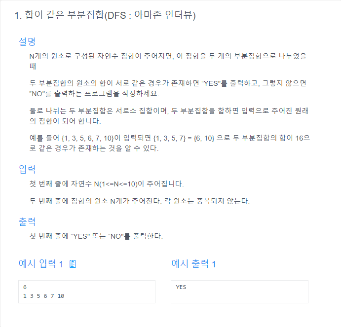 여기선 해당 인덱스의 원소를 부분집합의 합으로 사용한다/사용하지 않는다라고 재귀호출