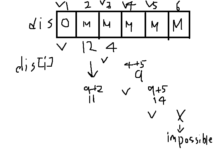 dis[5] > 9 + 5 참 이므로 dis[5] = 9 + 5 = 14