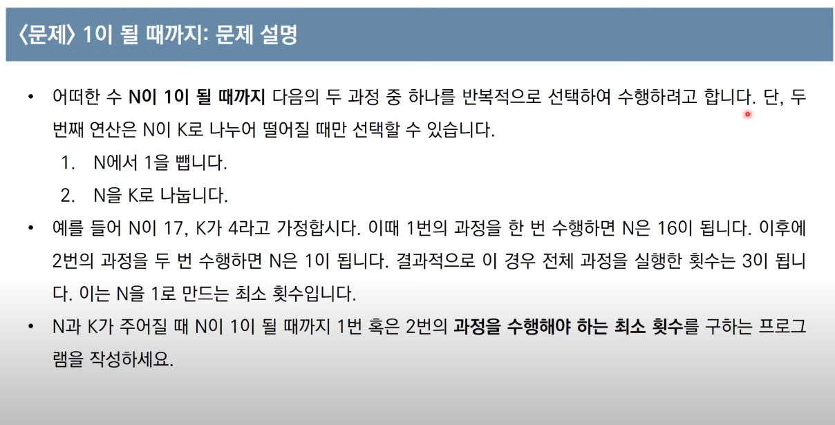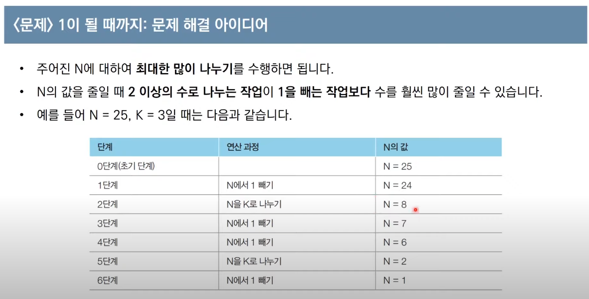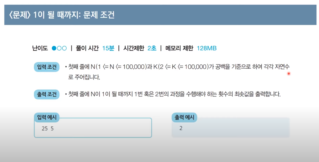 // N이 K보다 작을 때 (더 이상 나눌 수 없을 때) 반복문 탈출