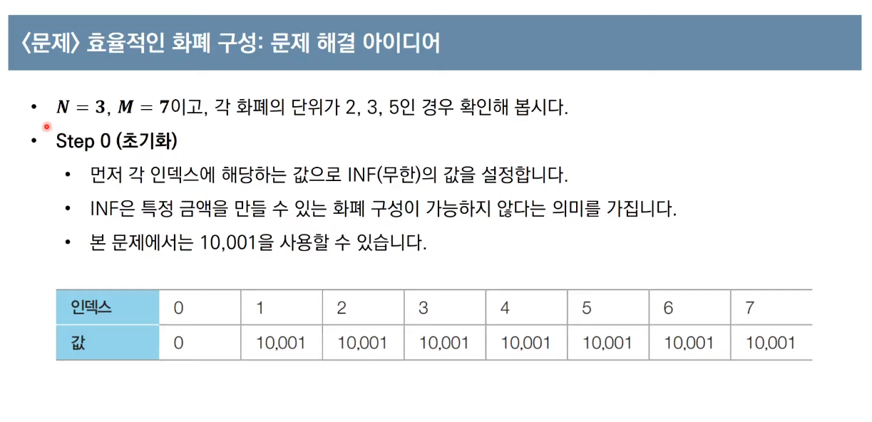 //m원을 만들기위한 dp 테이블 초기화