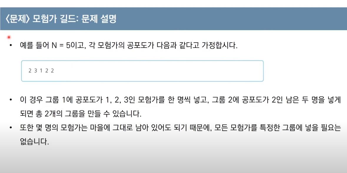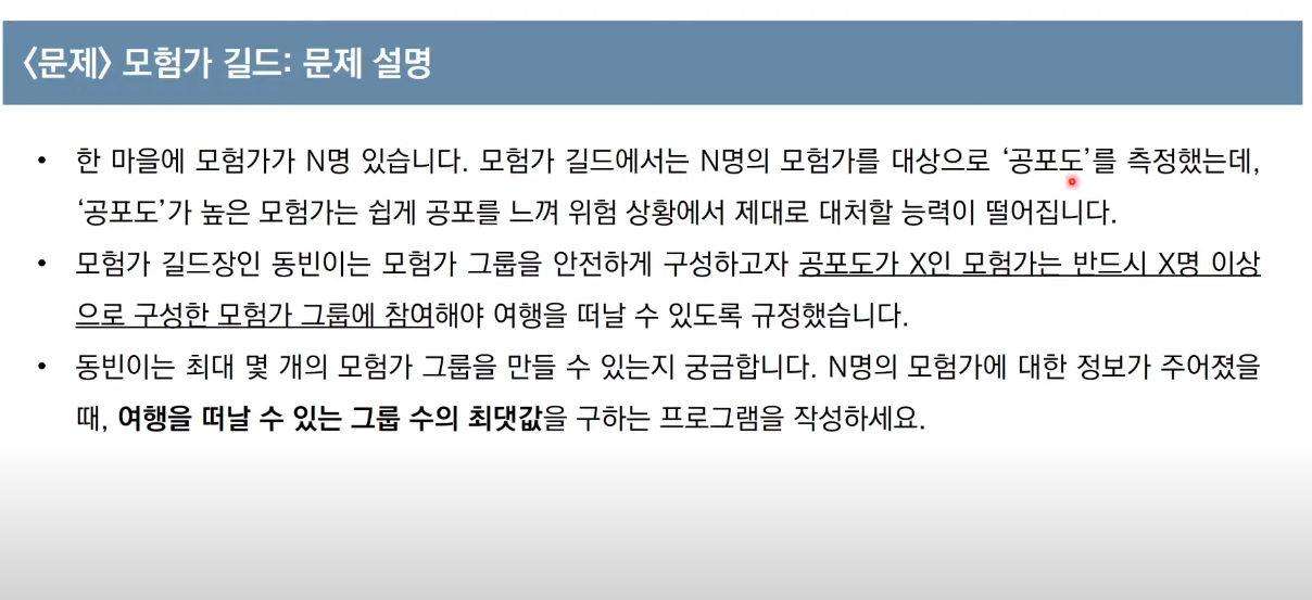 ★★그룹에 포함된 모험가의 수 >= 해당 모험가의 공포도 이면 하나의 그룹으로 만들 수 있다.