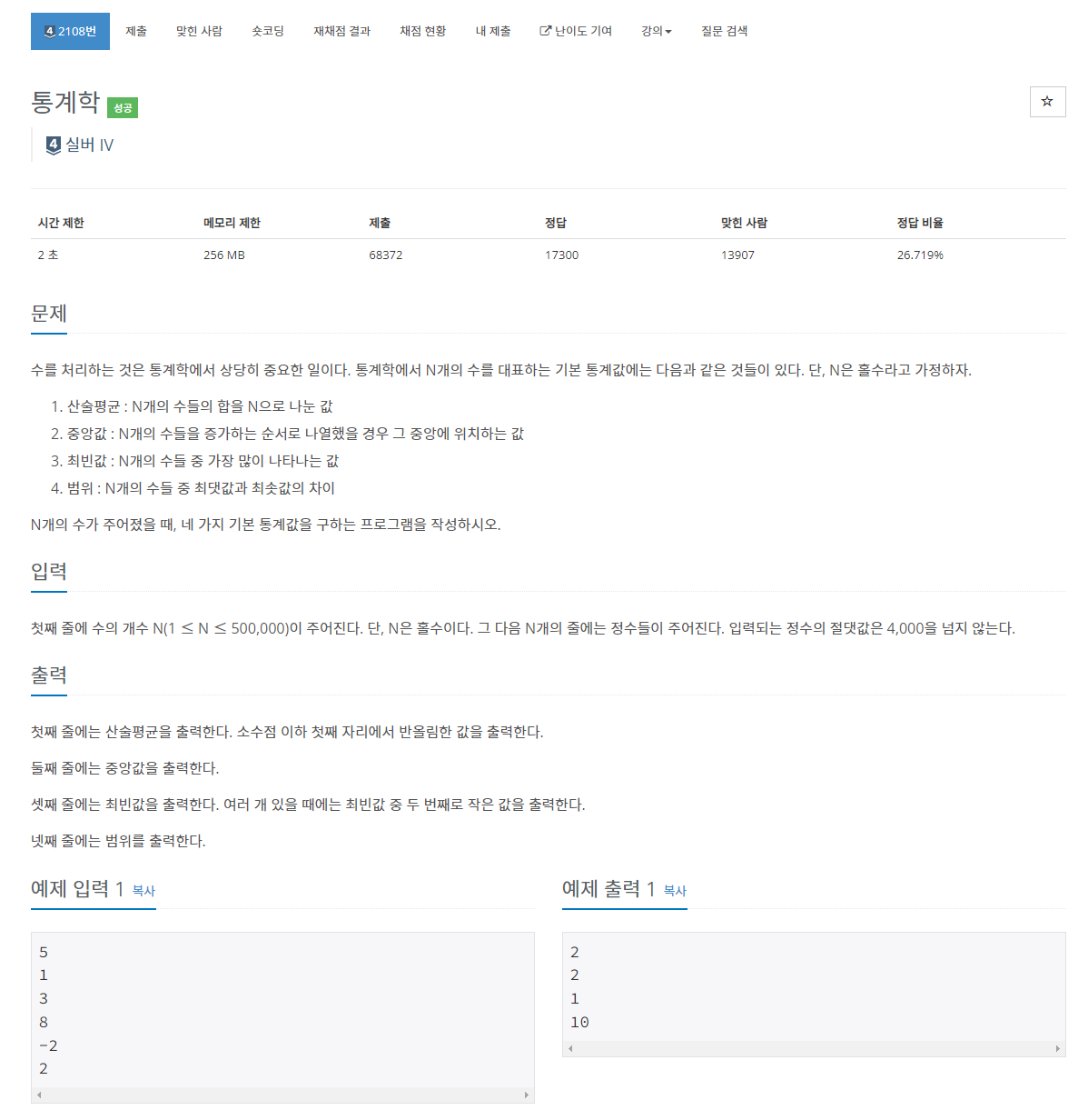 하지만 최빈값에서 계수 정렬을 하려고 하니 음수 값도 들어와서 문제가 생겼다.