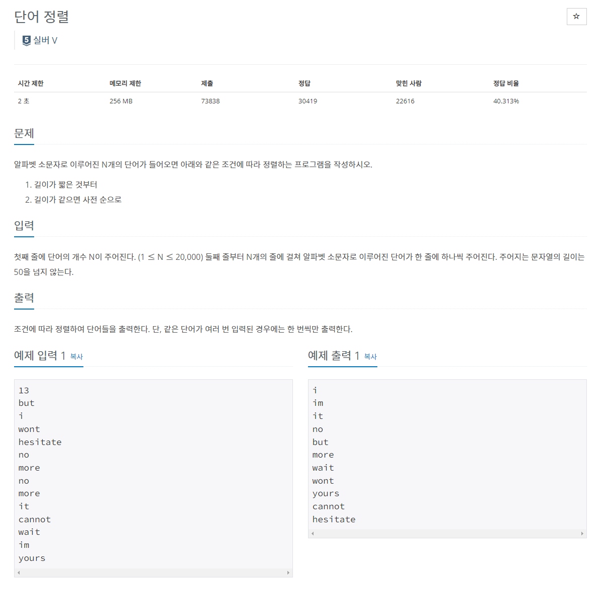 이거는 사전순 정렬과 문자열의 길이가 짧을 때 정렬을 참고 하기위하여 작성하였음
