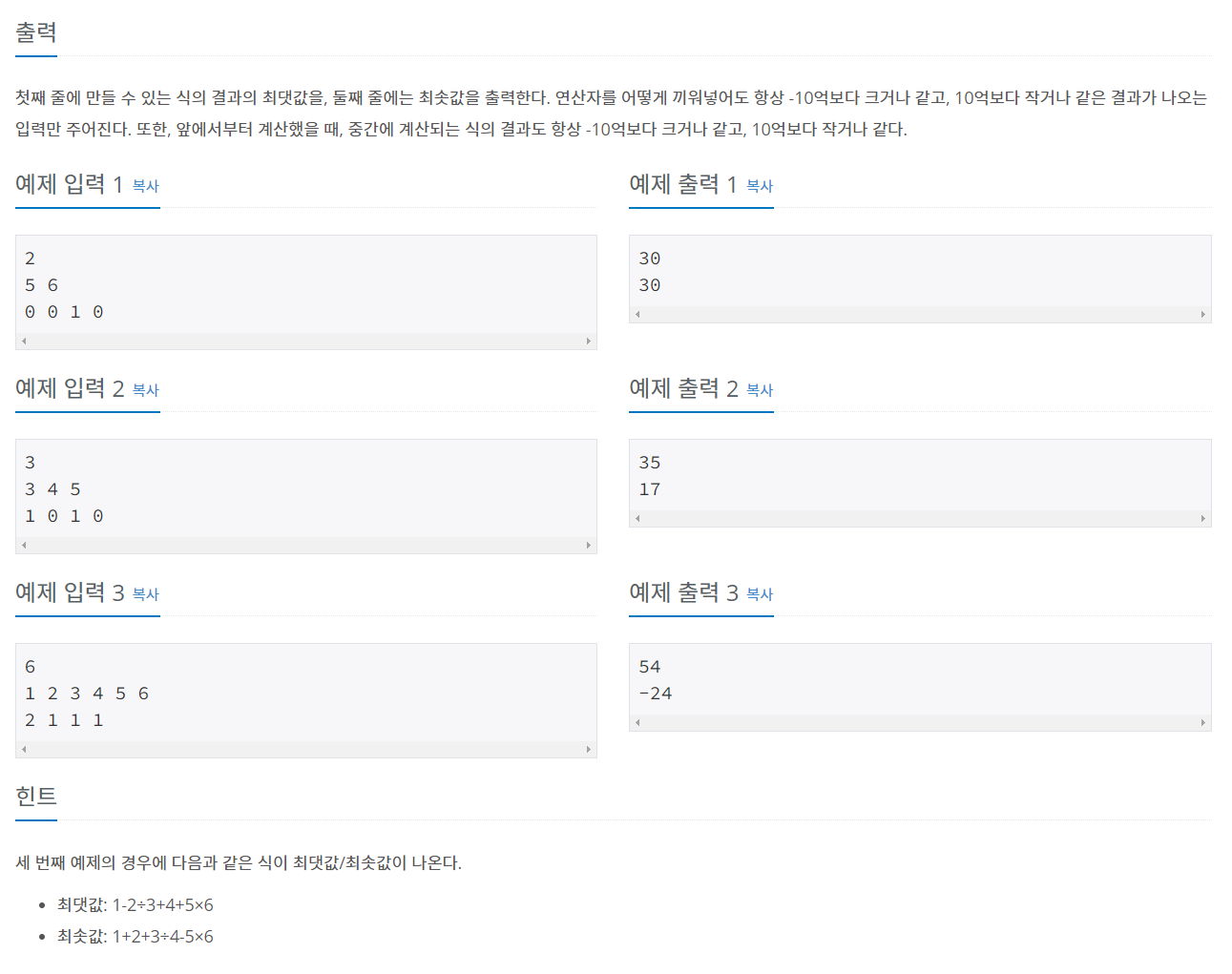 이런식으로 모든 연산식에 대해서 최댓값/최솟값을 n번 사용할 때 마다 기록해준다.