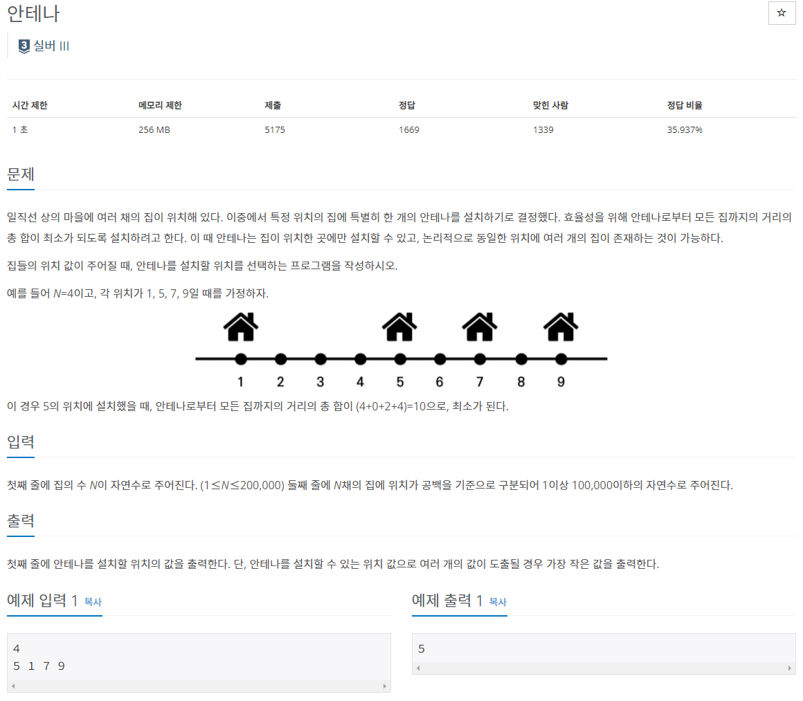 시간 초과 판정을 받았다. 집의 중간위치에 있는 부분을 출력해주면 되는 문제였다..