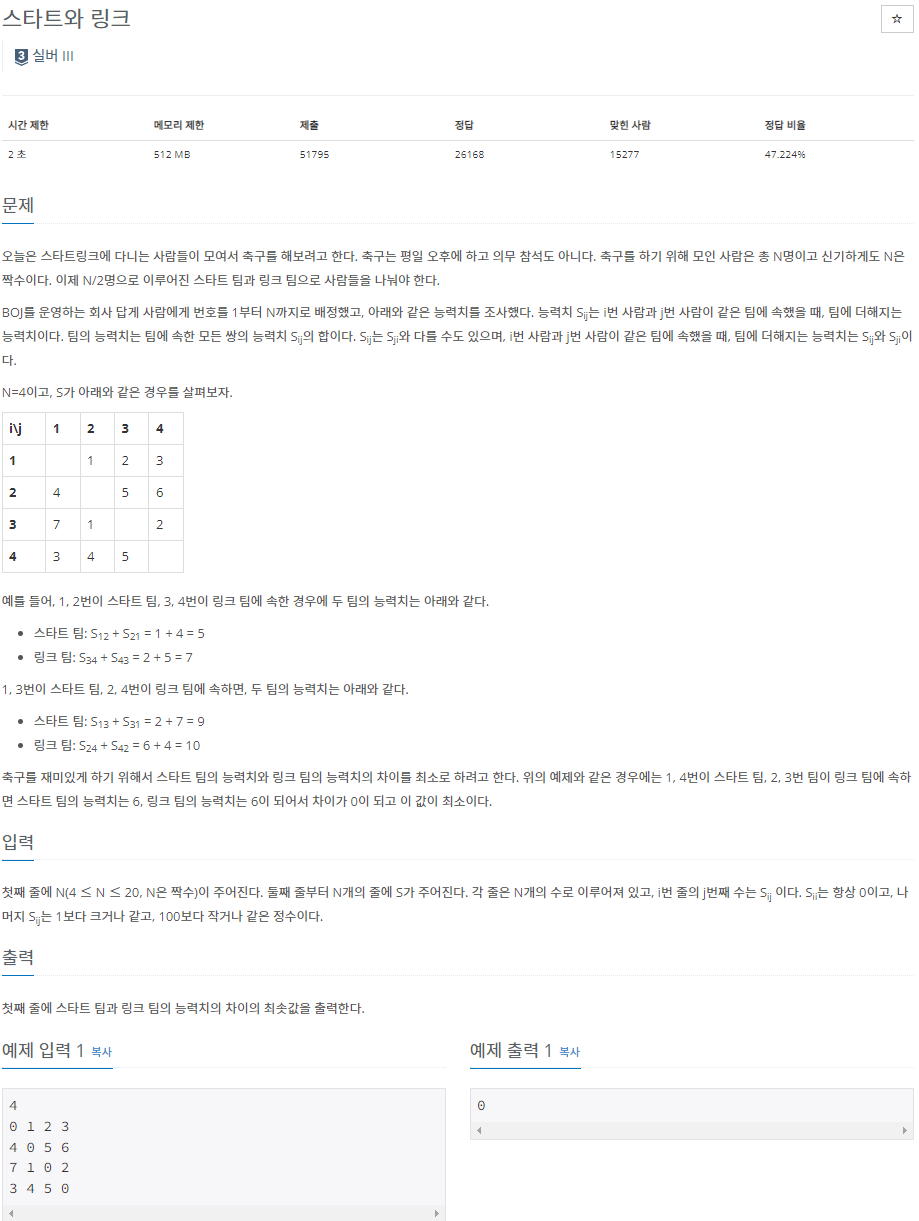 //반으로 나눠서 스타트 팀, 링크 팀의 점수 구하기