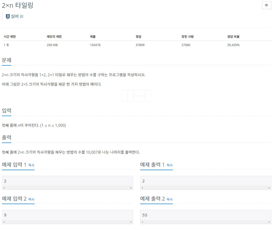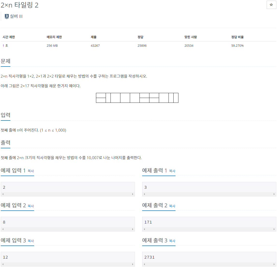 //dp[n]은 2Xn의 타일을 채우는 방법의 수