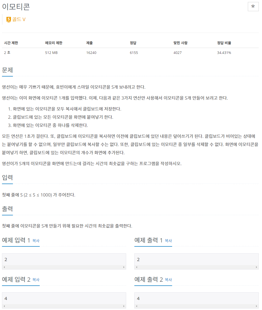 //이모티콘 갯수와 클립보드에 따른 탐색 여부 담는 배열