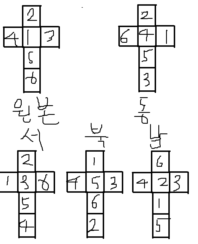 1. 위와 같이 동서북남에 따라 방향에 맞게 주사위의 값을 변경시켜준다.