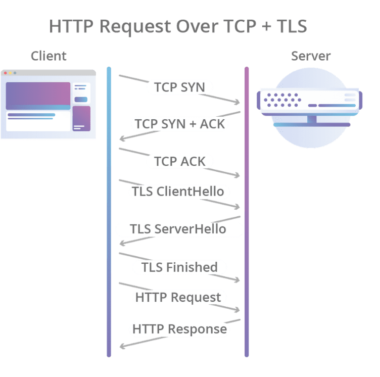 클라이언트가 보낸 요청을 서버가 처리한 후 클라이언트로 응답해주는 사이클을 RTT(Round Trip Time)이라고 하는데, TCP는 연결을 생성하기 위해 기본적으로 1 RTT가 필요하고, 여기에 TLS를 사용한 암호화까지 더한다면 TLS 자체 HandShake까지 더해져 총 3 RTT가 필요합니다.
