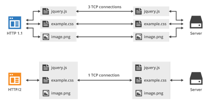 하나의 커넥션에서 한 번에 하나만의 요청을 처리하며 요청에 대한 응답이 순차적으로 이뤄지는 HTTP와는 달리 적은 수의 커넥션으로 다수의 요청, 응답을 동시에 처리할 수 있습니다.