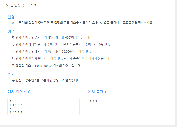 if(a[p1] == b[p2]) { // 공통 원소를 찾았으면 둘 다 증가