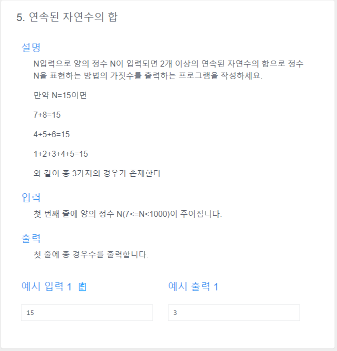 int cnt=1; // cnt는 연속된 자연수의 갯수